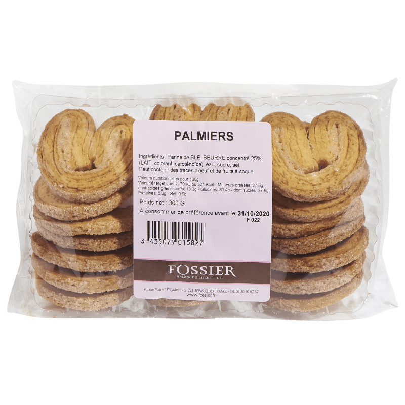 Barquette Palmiers pur beurre 300g