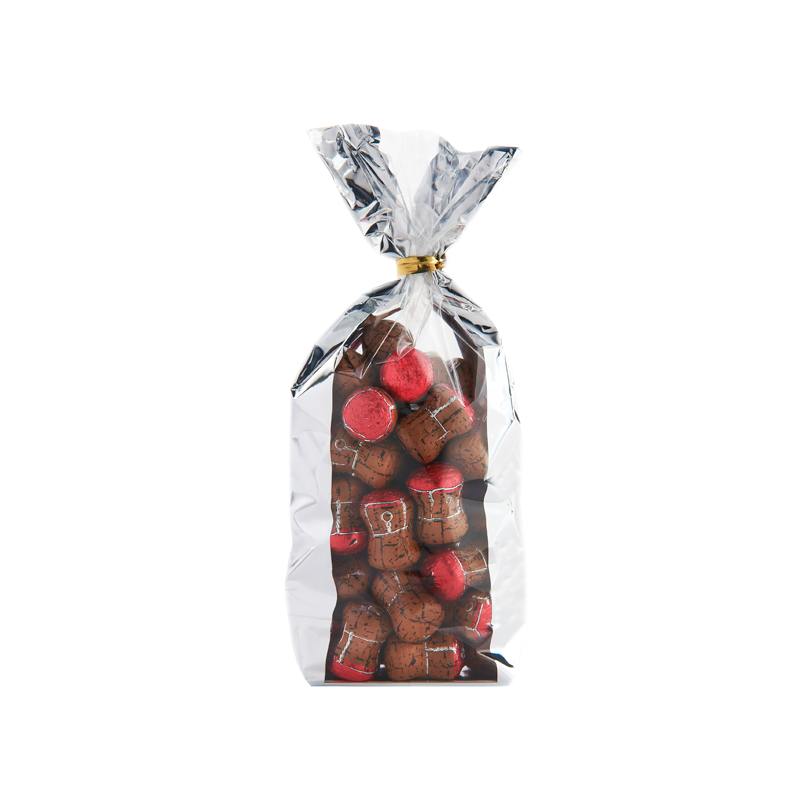 Il est enveloppé d'aluminium qui imite la couleur et la texture du bouchon en liège. Il mesure environ 2 cm de haut. Son chocolat est d’excellente qualité.