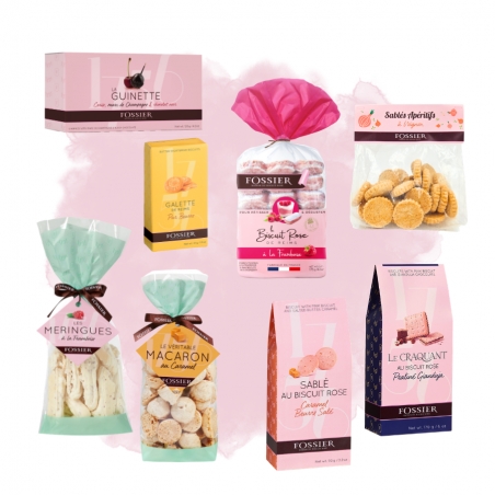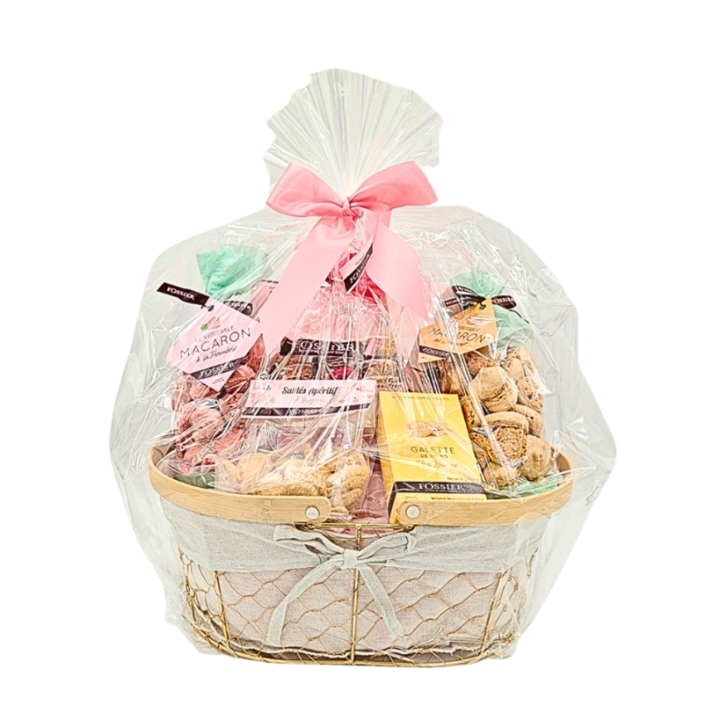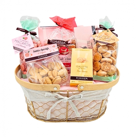 Laissez-vous séduire par notre nouvelle composition « Jardin des Délices », un panier doré garni de nos iconiques Biscuits Roses, Craquants et Sablés, Macarons et autres incontournables ! ✨